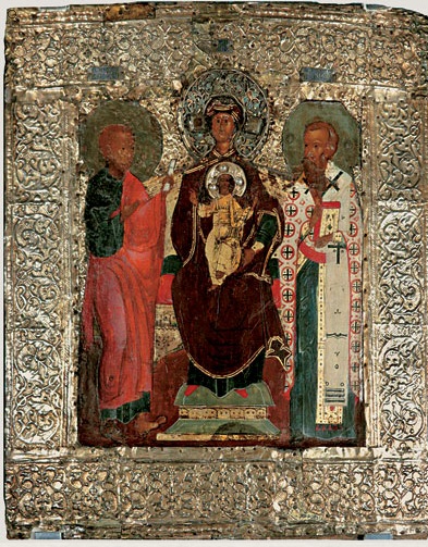 Богоматерь Воплощение с предстоящими апостолом Филиппом и священномучеником Ипатием епископом Гангрским (в окладе).